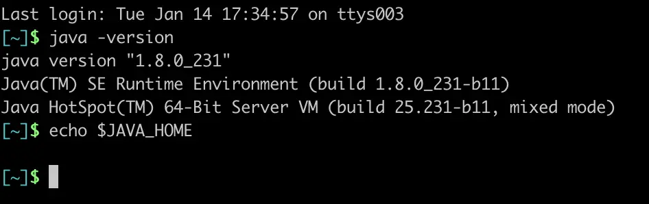 有的文章,说要安装java完成后,需要配置环境变量。我没有配置,所以上图的echo $JAVA_HOME打印的是个空。现在我还不知道会不会有什么其他影响,暂且记下。