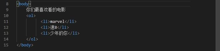 ①有序标签:<ol> </ol>即相当于列表架,<li> </li>相当于列表项。