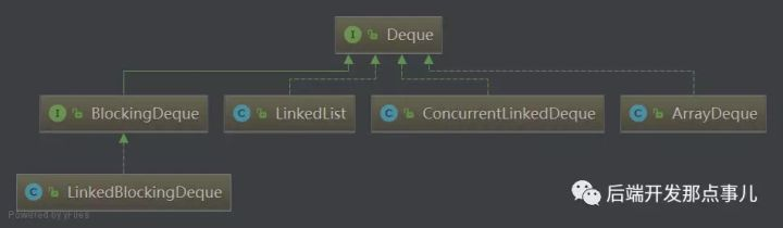 Deque 接口的实现相对较少,主要有 LinkedList、ArrayDeque、ConcurrentLinkedDeque 和 LinkedBlockingDeque。