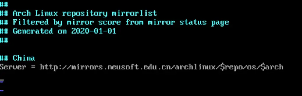 arch linux中内置了多个镜像地址,为了加快软件下载速度,可以只保留中国镜像