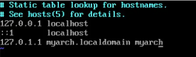 127.0.1.1 myarch.localdomain myarch