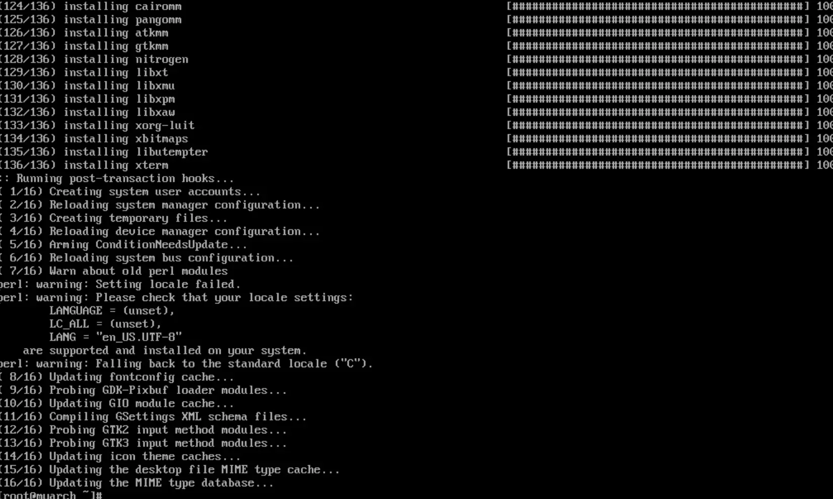 下面的操作都是在arch-chroot命令执行后操作了