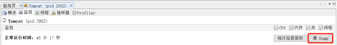 - 在“监视”页签中单击“堆 Dump”。