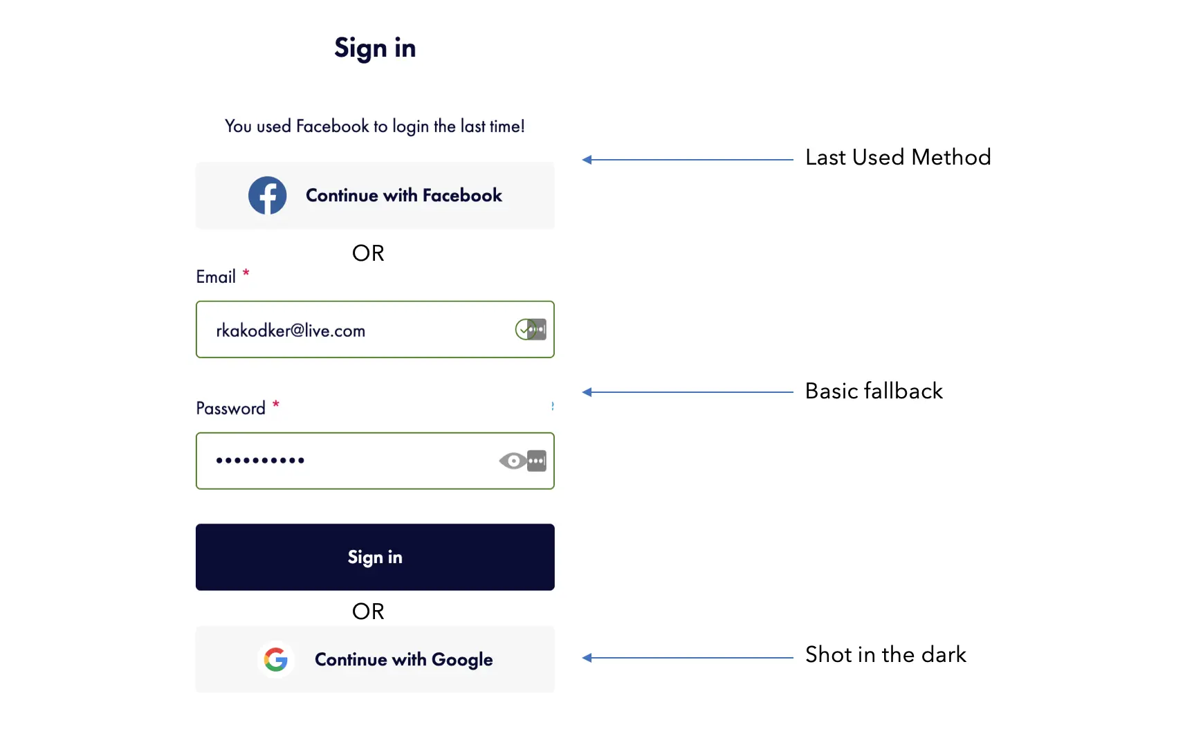 - 尽量不要超过 3 种单点登录方式 —— 这会让用户感到疑惑,他们不记得自己使用的是脸书、谷歌还是推特。