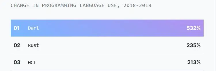 根据 Github Octoverse,Rust 是增长第二快的编程语言,仅次于 Dart: