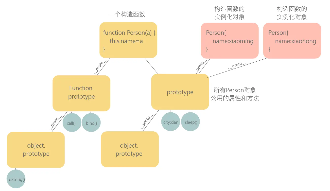 本身是空的,通过Person.prototype.city = xian设置公用的属性;Person.prototype.sleep = function(){... } 设置公用的方法