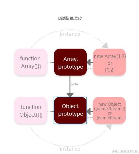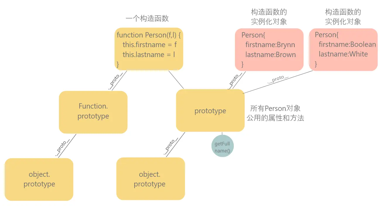 但它们都可以调用这个方法,因为他们都存在于person这个构造函数的prototype中,用person这个构造函数生成的所有对象,它们的原型(__ proto __)都是person的prototype。