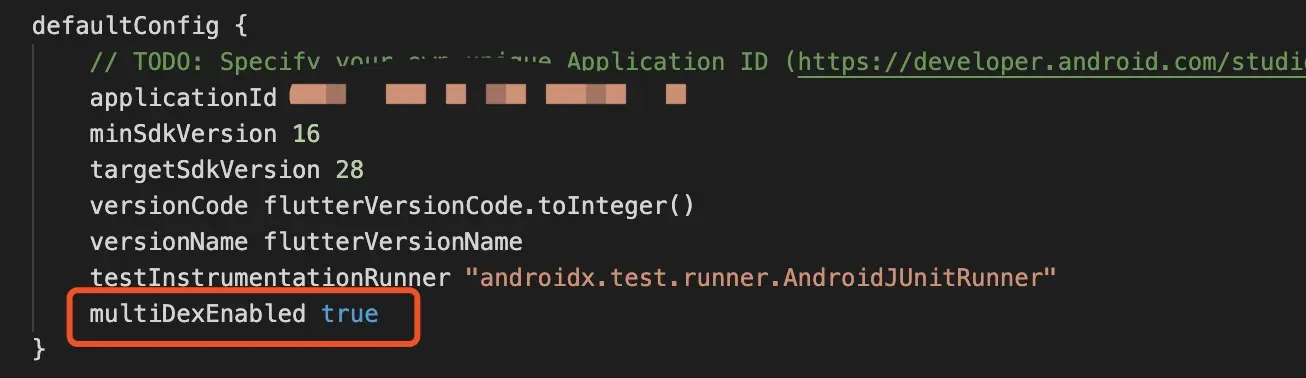 Flutter 添加新插件后报The number of method references in a .dex file cannot exceed 64K. Asscre 2020-01-15 2,274 阅读1分钟 不BB直接上=====> 解决方案: 在android/app/build.gradle中的 dependencies 下添加 implementation 'com.android.support:multidex:1.0.3' 在android/app/build.gradle中的 defaultConfig 下添加 multiDexEnabled true
