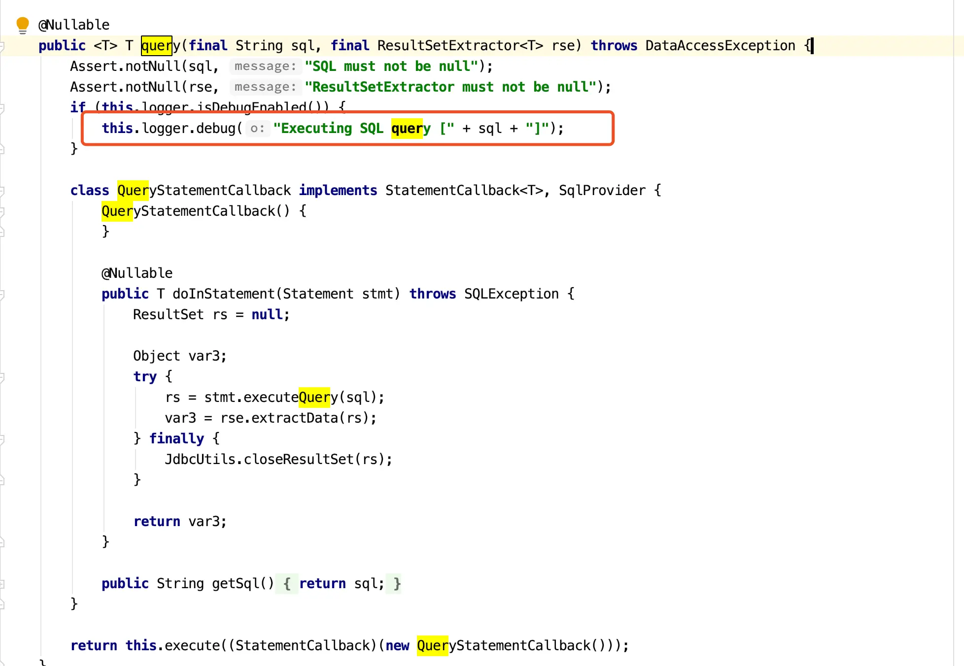 org.springframework.jdbc.core.JdbcTemplate: DEBUG