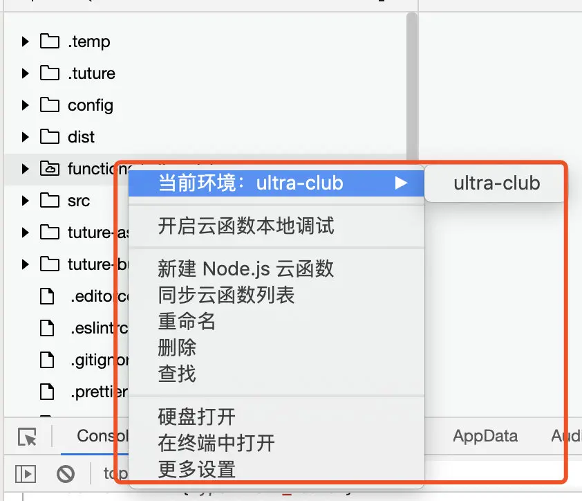 functions文件夹,开启了 “云函数本地调试”。 - 接着选中我们的