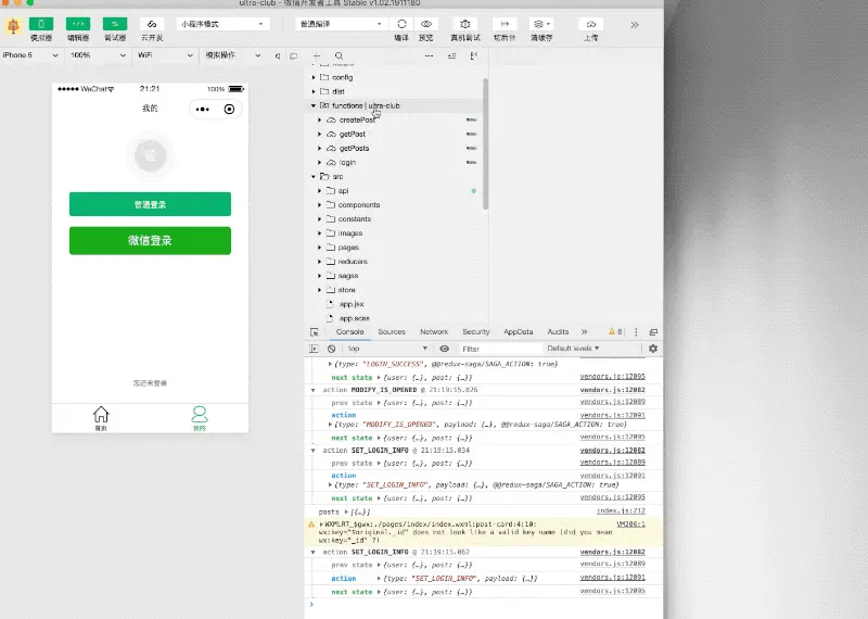 因为我们在上一节 “实现 Redux 异步逻辑” 中已经处理了 LOGIN 的整个异步数据流逻辑,所以这里只需要 dispatch 对应的 LOGIN action 就可以处理微信登录的异步逻辑了。