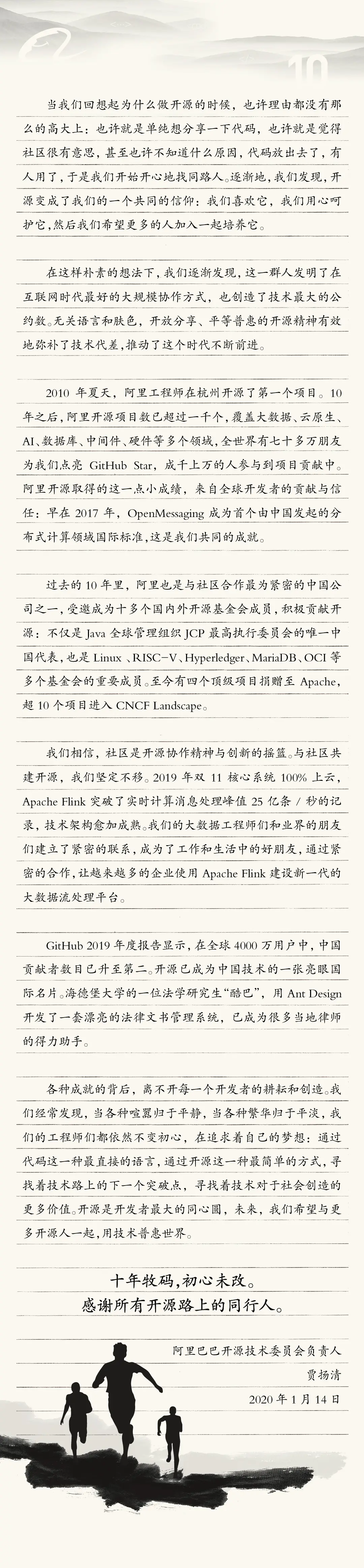 在一起 10 年了,这封信你一定要收下 阿里云云原生 2020-01-15 751 阅读1分钟 回顾过去 10 年,感谢有你一路同行。 “阿里巴巴云原生关注微服务、Serverless、容器、Service Mesh 等技术领域、聚焦云原生流行技术趋势、云原生大规模的落地实践,做最懂云原生开发者的技术圈。”