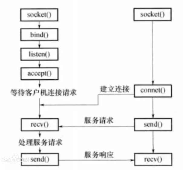 - 应用程序通过系统调用socket(),建立连接,接收和发送数据(I / O)。