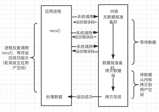 - 将数据从内核拷贝到进程中(CPU闲置)。