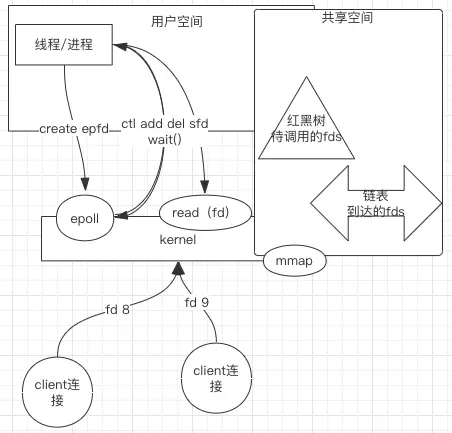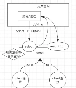 缺点:当进程有1000fds,代表用户进程轮询发生系统调用1000次kernel,来回的用户态和内核态的切换,成本几何上升。