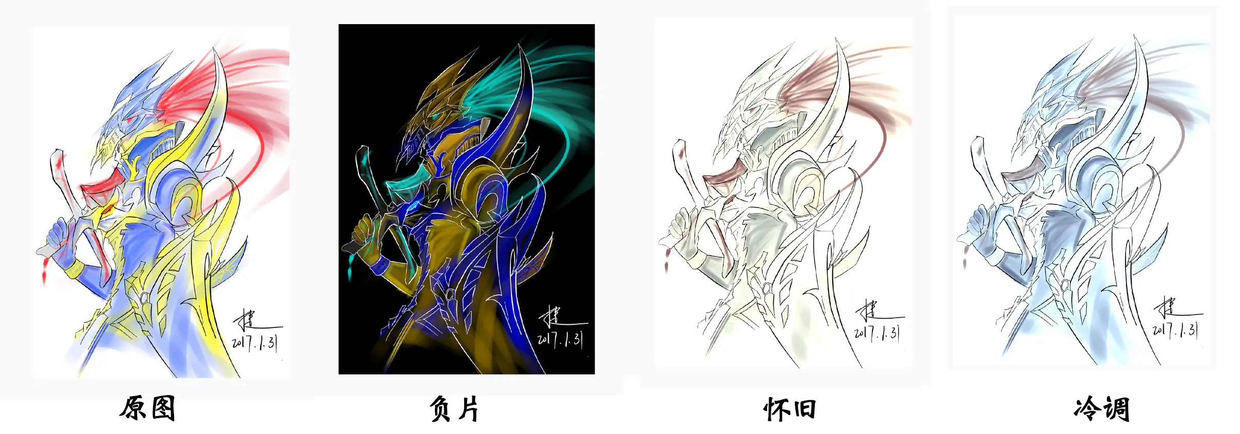 冷调中只是将r和b的色值进行对调,就能达到相反的效果