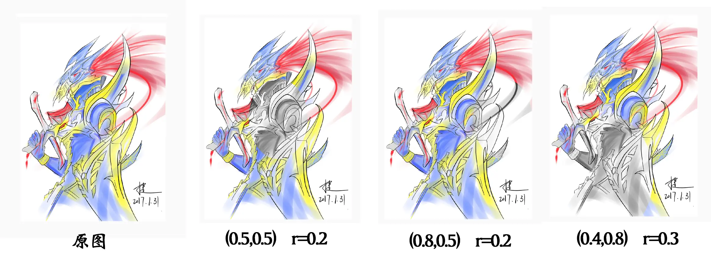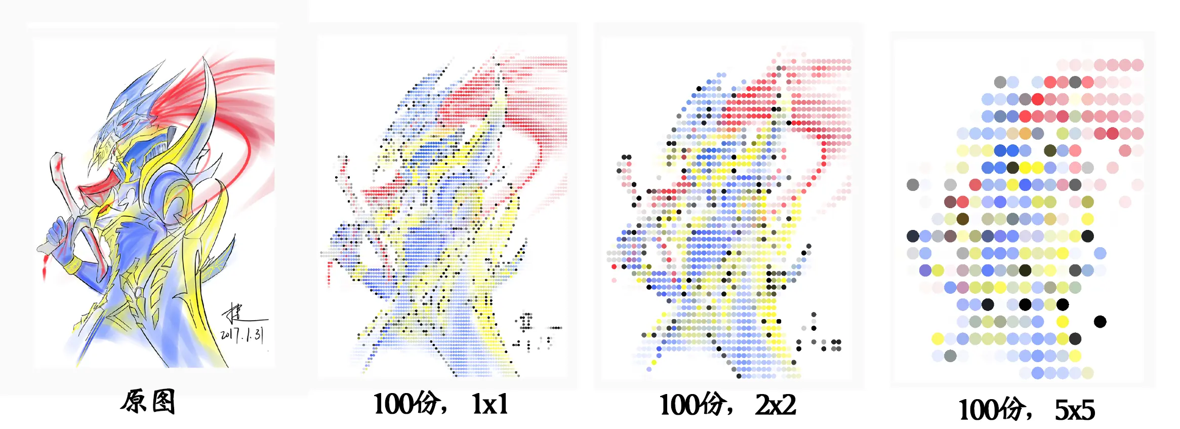 和矩形马赛克类似,将图片分成若干个块,当在cell半径之内, 绘制