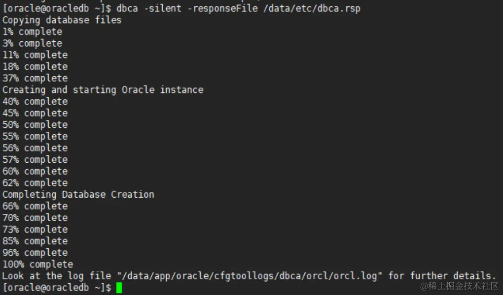 [oracle@oracledb ~]$ dbca -silent -responseFile /data/etc/dbca.rsp