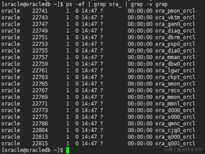 [oracle@oracledb ~]$ ps -ef | grep ora_ | grep -v grep