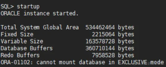 提示: cannot mount database in EXCLUSIVE mode //无法以独占模式装载数据库