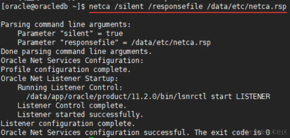 [oracle@oracledb ~]$ netca /silent /responsefile /data/etc/netca.rsp