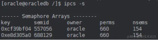 [oracle@oracledb /]$ ipcs -s //查看信号量