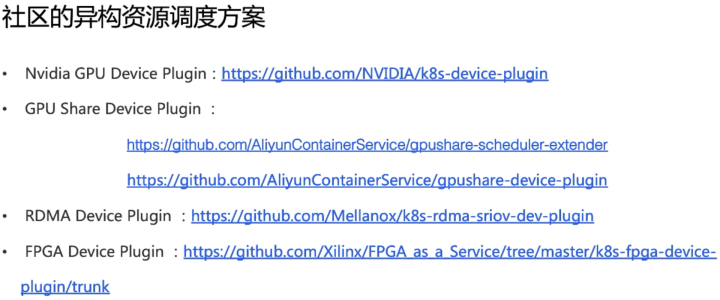 - 下面的两个 RDMA 和 FPGA 是由具体厂商提供的调度方案。