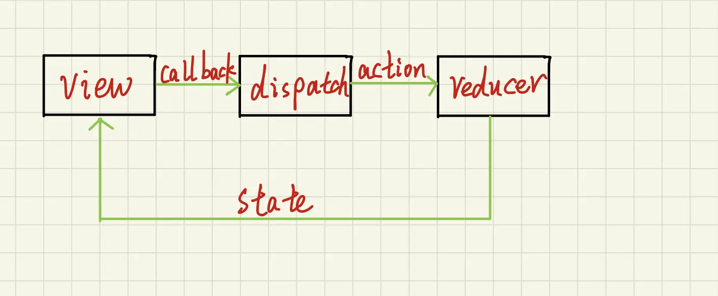 - dispatch():将action作为参数,目的是更新state