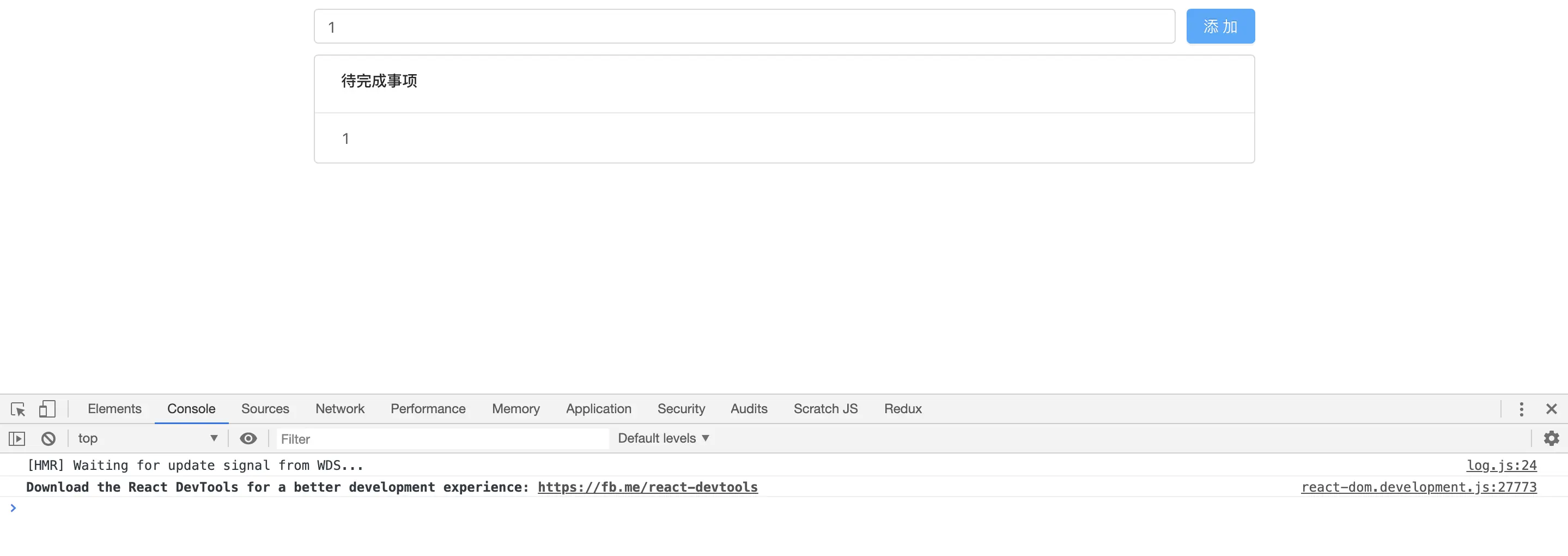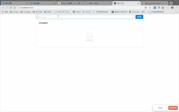 经过上面的步骤,我们其实已经实现了一个简单的todoList,我们可以看一下效果: