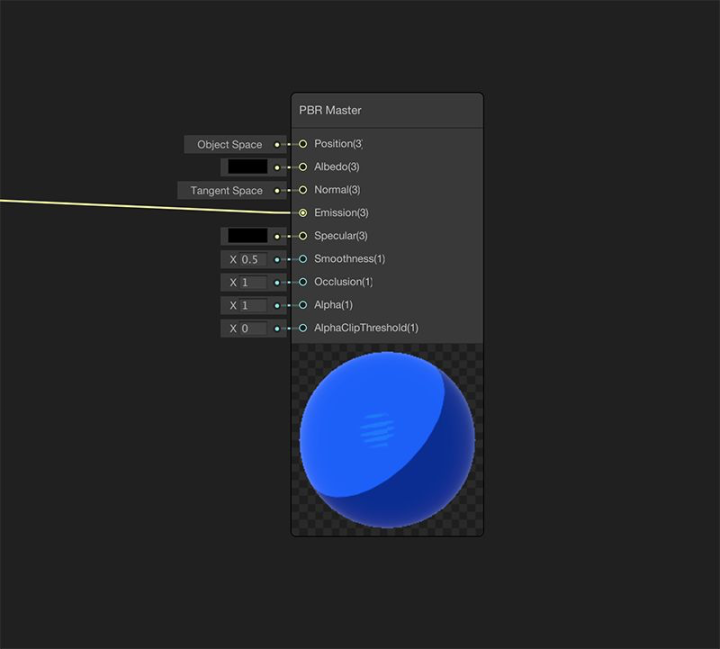 那么我是如何控制颜色的呢?答案是使用发射。这会带来额外问题:Emission槽需要同时充当反照率、镜面反射、金属度和发射。