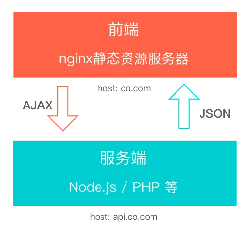 对于上面说到的“前后端分离:纯前端 + 接口层 (开发模式)”这一场景,当我们在http://co.com的页面上直接调用http://api.co.com的接口时,会出现跨域问题。