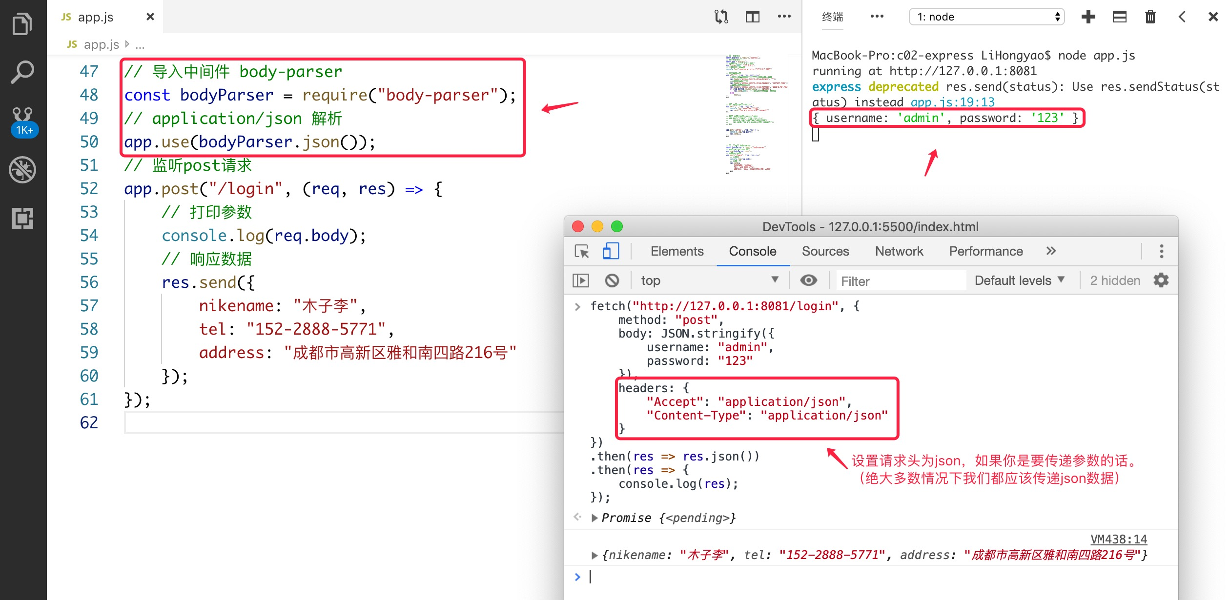 body-parser: nodeJS中间件,用于处理 JSON, Raw, Text 和 URL 编码的数据。 -
