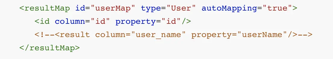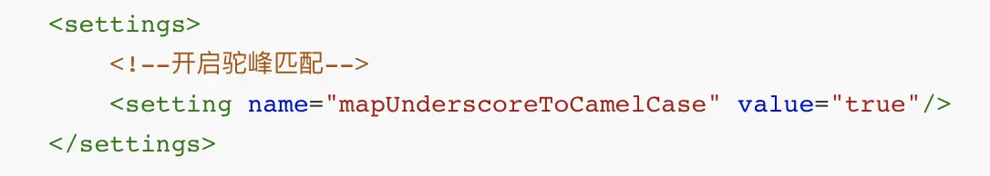 在实际的操作中,有时候解决数据库中列名有下划线而不能映射到属性的问题,这个时候就需要我们开启开启驼峰匹配,使用settings设置可以完成这一步,下图是一个实例。
