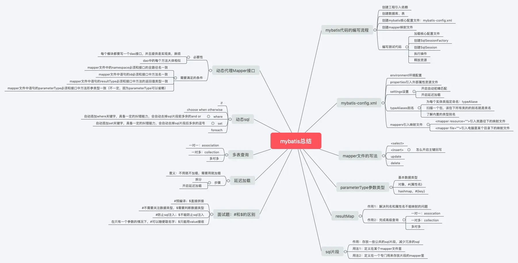 1.当多表查询的时候,实体类的改造;2.resultMap的继承;3.延迟加载;4.如果sql语句中出现<的解决方案;最后给大家一张Mybatis的总结图