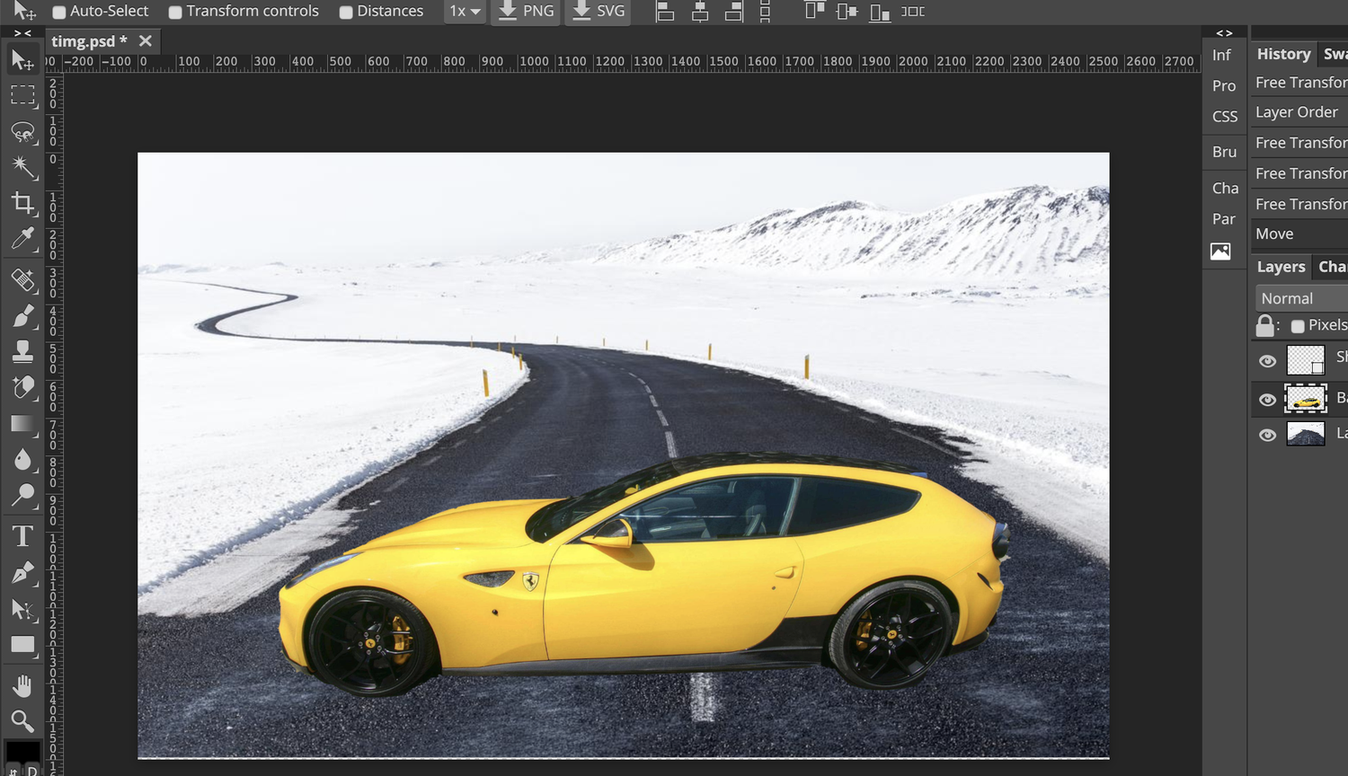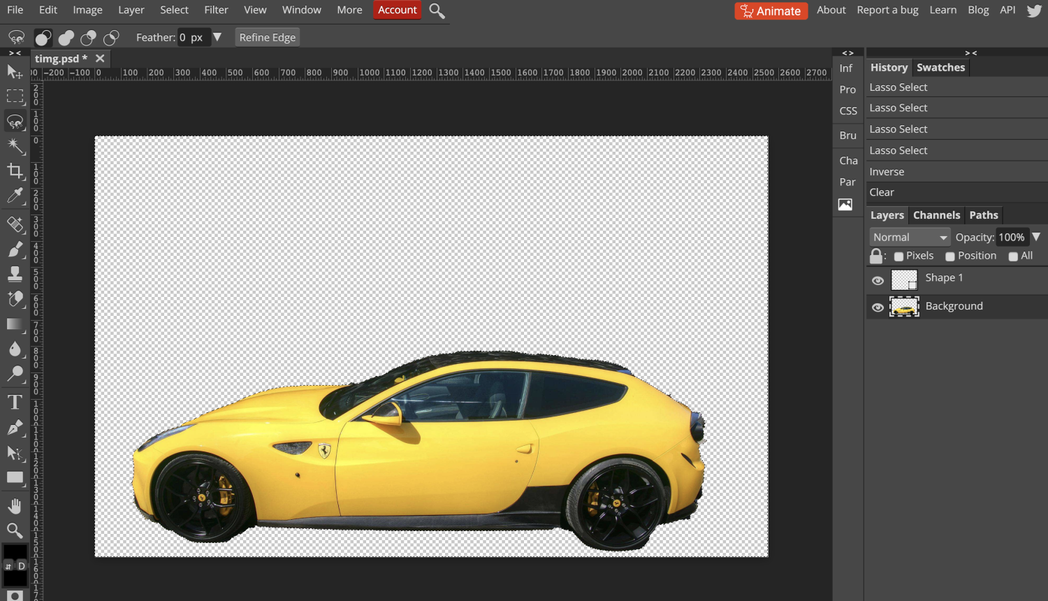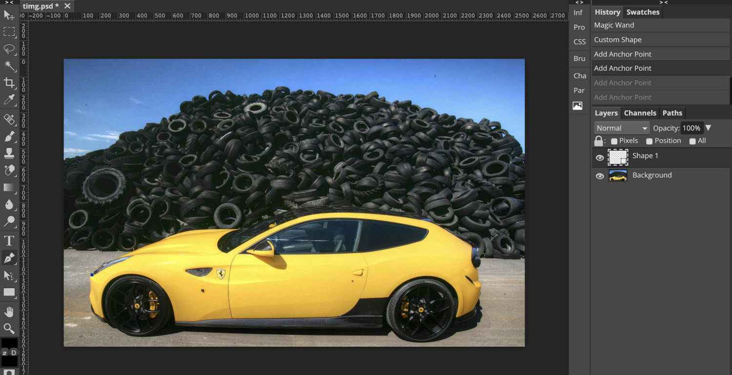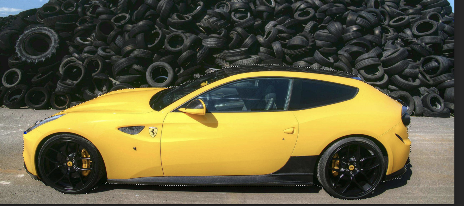 我来个抠图吧,把这辆黄色小破车从这堆轮胎中拯救出来。