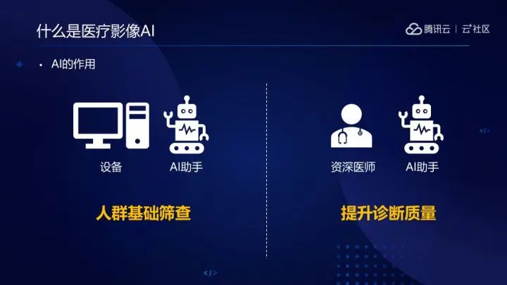 人工智能对于医疗领域来说,主要有两个作用,一个是进行人群基础筛查,另一个是提升诊断质量。对于一些简单的疾病,人工智能能达到较高的诊断性能,用于人群疾病初筛的工作上,在一定程度上缓解缺乏医护人员的问题。而一些治疗难度较高的疾病,人工智能可以为医生诊断提供参考依据,起到提醒作用。