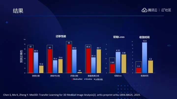 最终的实验结果证明,在3D医疗影像应用中,MedicalNet能帮助小数据场景的网络加快收敛速度,提升预测性能。