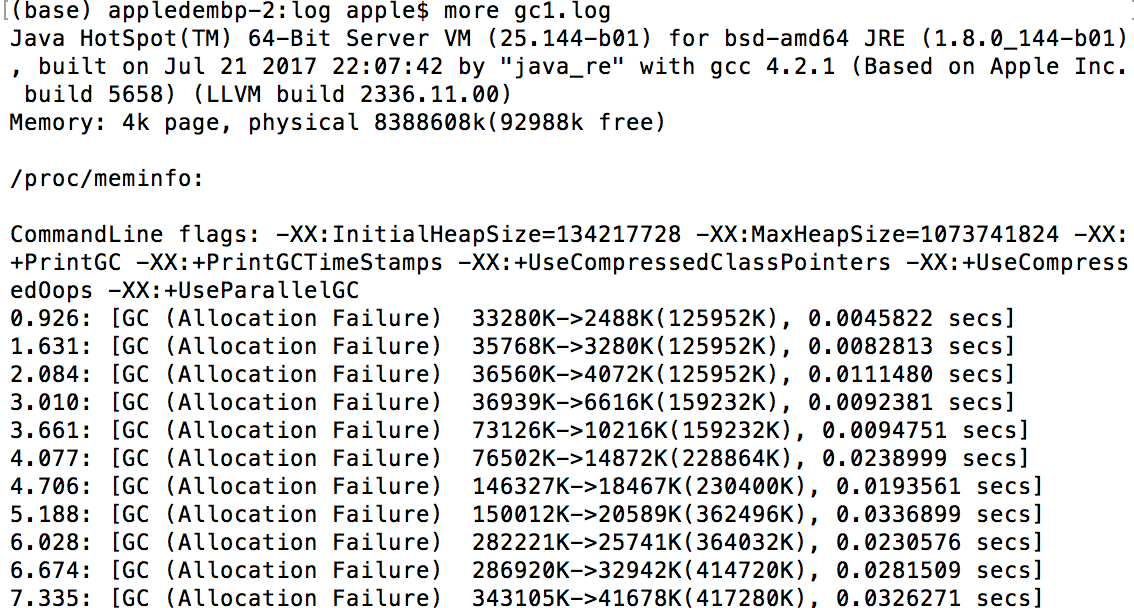 2、配置启动后,在文件夹下产生gc1.log。more 文件夹。可以看到: