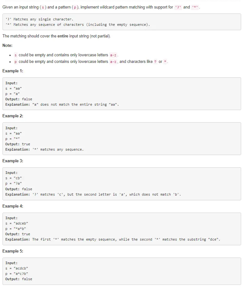 字符串匹配,? 匹配单个任意字符,* 匹配任意长度字符串,包括空串。和第 10 题有些类似。
