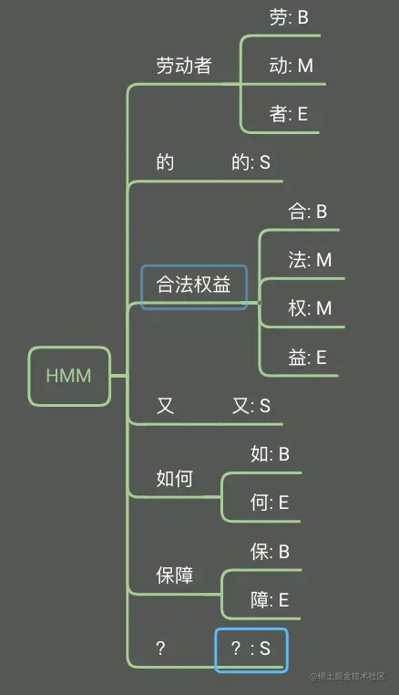 如果将观测换成字符,状态换成{B, M, E, S},我们就能应用隐马尔科夫模型驱动中文分词。
