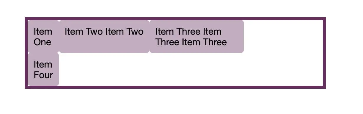 如果有任何文本字符串(未包装在元素中)即是网格容器的直接子级,你就会看到不同,因为字符串将包装在匿名元素中并成为网格项。任何行内元素,比如span,只要直接处于网格容器中,就会表现出网格项的属性。