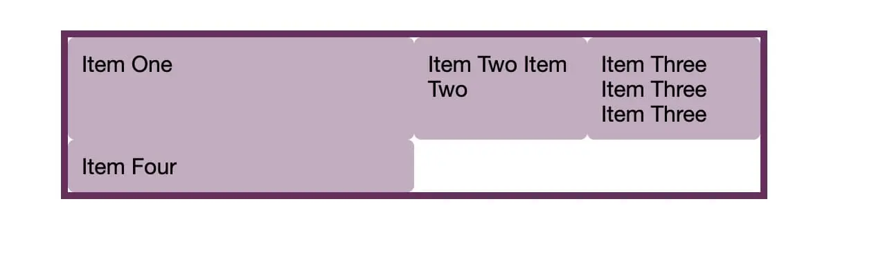 | grid-template-columns: 1fr 1fr 1fr; | 使用fr创建了三列网格,这三列将平分容器尺寸 |