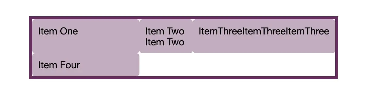 在一下个例子中,我将去掉第三列中字符的字间距。这样就形成了一个长的不可折断的字符串,所以,在进行网格布局之前会优先处理字符串的布局,将它所在的列撑开了。然后剩余的两列按照2:1的比例进行布局。