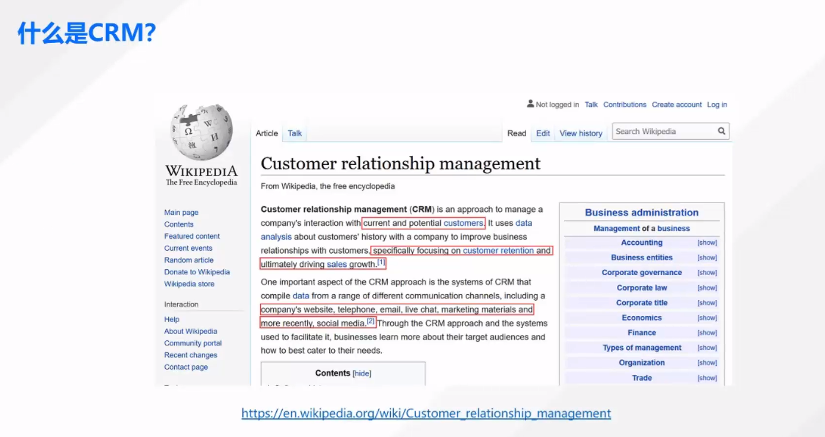 先理解一下什么是SCRM?大家已经比较了解CRM系统的概念和背景,截一张Wikipedia上面的完整定义给大家看一下: