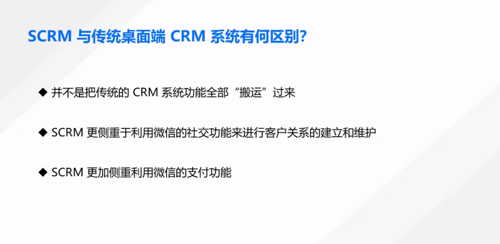 但是,SCRM小程序跟传统的CRM系统还是有很大区别的: