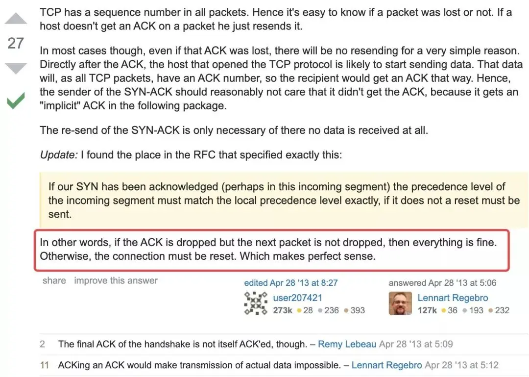 其实这道题更加深挖了TCP 建立连接的过程,我们可以在rfc793中了解到详细信息。