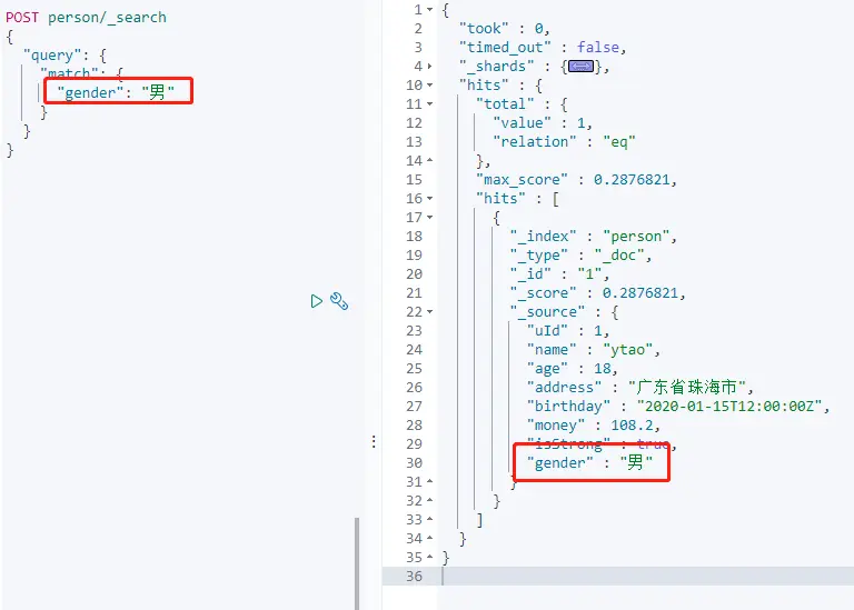 在关系型数据库中,存储数据之前,我们会先创建表结构,给字段指定一个存在的类型。同样 ElasticSearch 在进行数据存储前,也可以先定义好存储数据的 Mapping 结构。 先定义一个简单的 person Mapping: