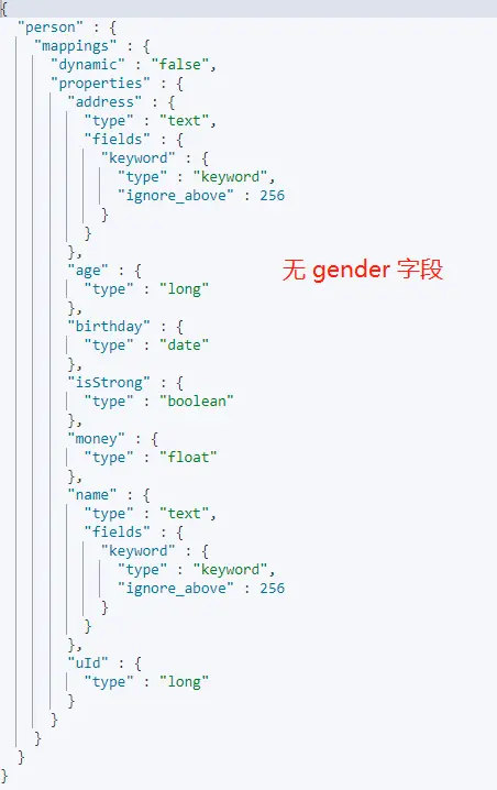 同样先将 dynamic 设置为 false,然后向里面添加数据,其他步骤和上面 true 操作一样。定义 Mapping,添加数据。