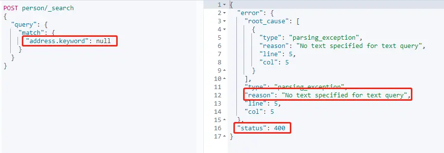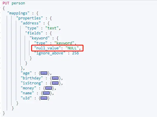 这是需要在 Mapping 指定 null_value 属性,并且不能在text类型中声明。