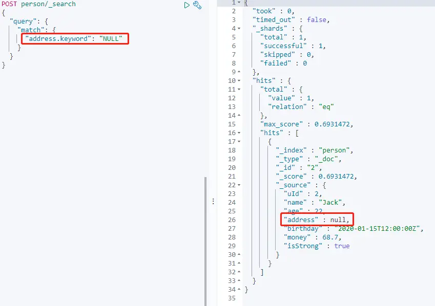 现在向 ElasticSearch 中添加一条 address 为空的数据: